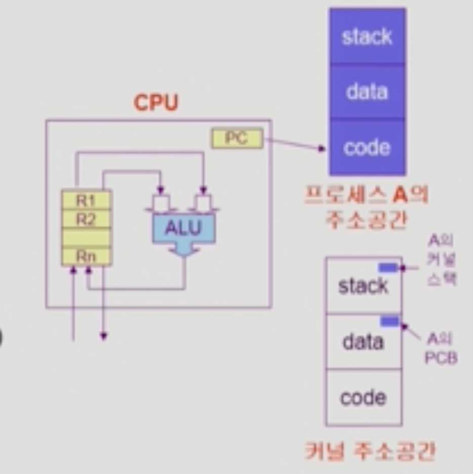 - program counter : CPU가 프로세스의 코드를 어디까지 처리했는지